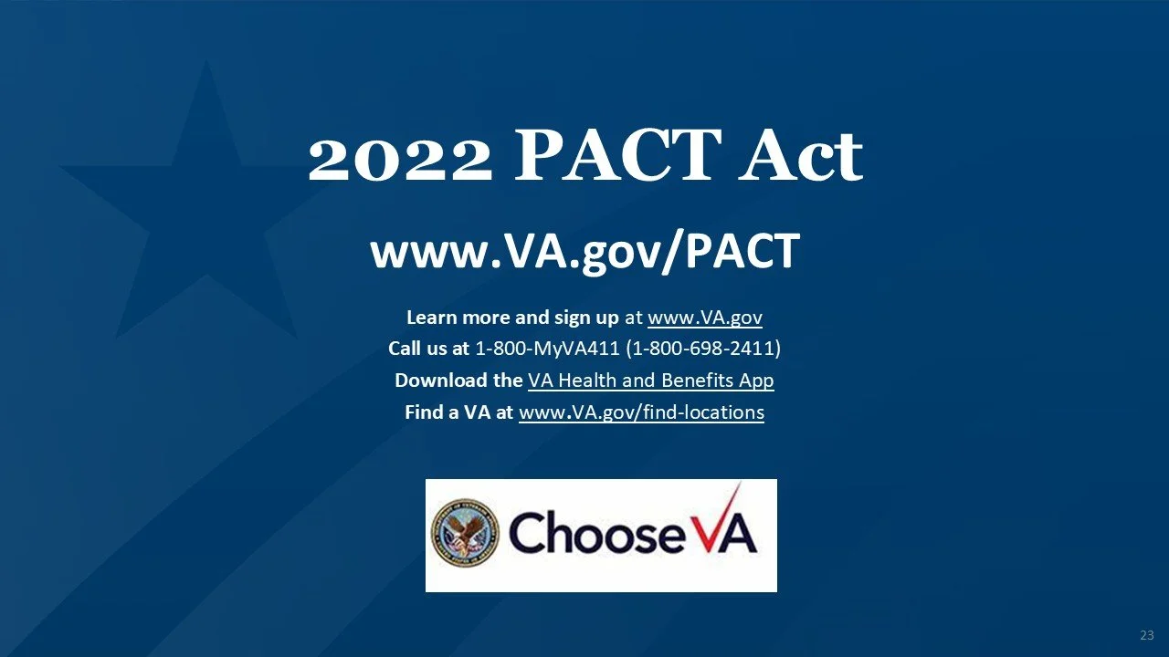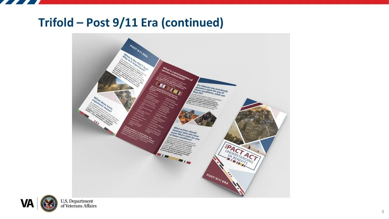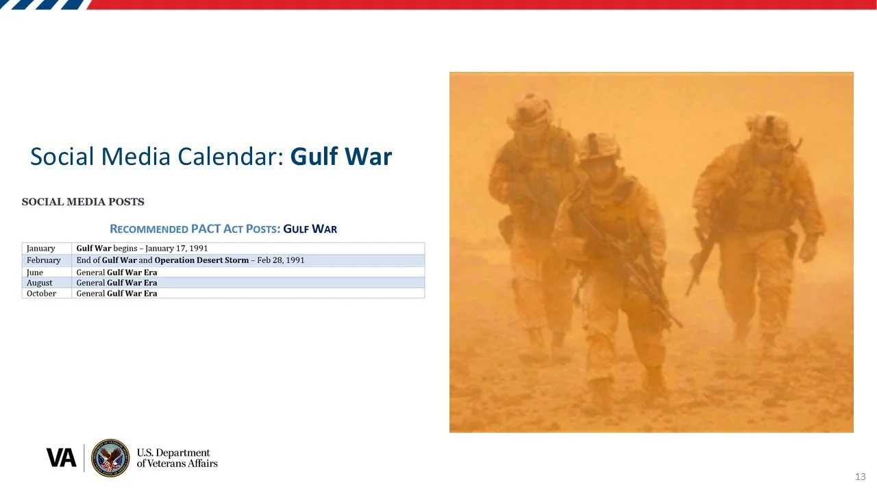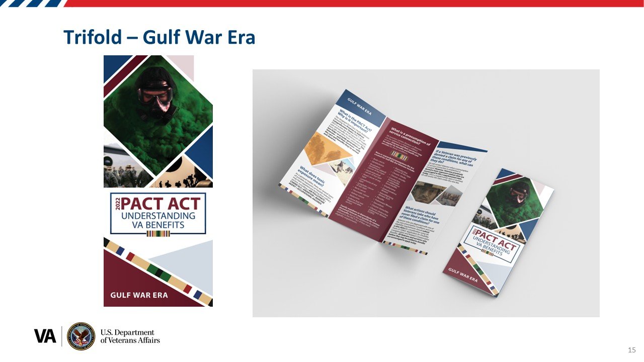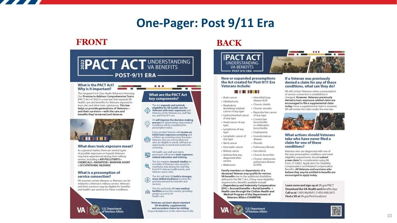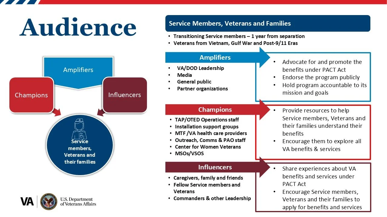 I led the strategic communications plan* and executive briefing to support the rollout of the Sergeant First Class Heath Robinson Honoring our Promise to Address Comprehensive Toxics (PACT) Act—a law that expands health care and benefits for Veterans exposed to toxic substances. I turned complex legislation into clear, targeted messages for Service members, Veterans, and their families from the Vietnam, Gulf War, and Post-9/11 eras. I created social media content, print materials, and outreach tools to help these audiences understand and access their VA benefits. The strategy delivered one clear message: VA is valuable, desirable, and convenient.