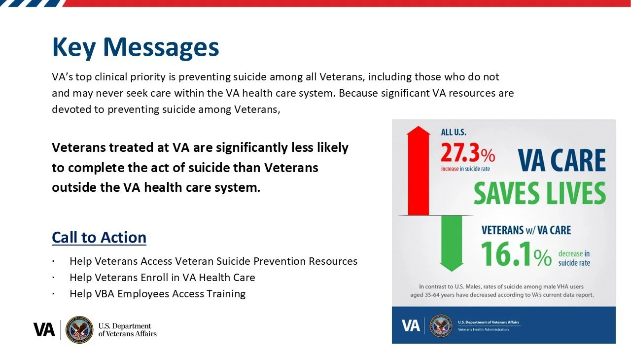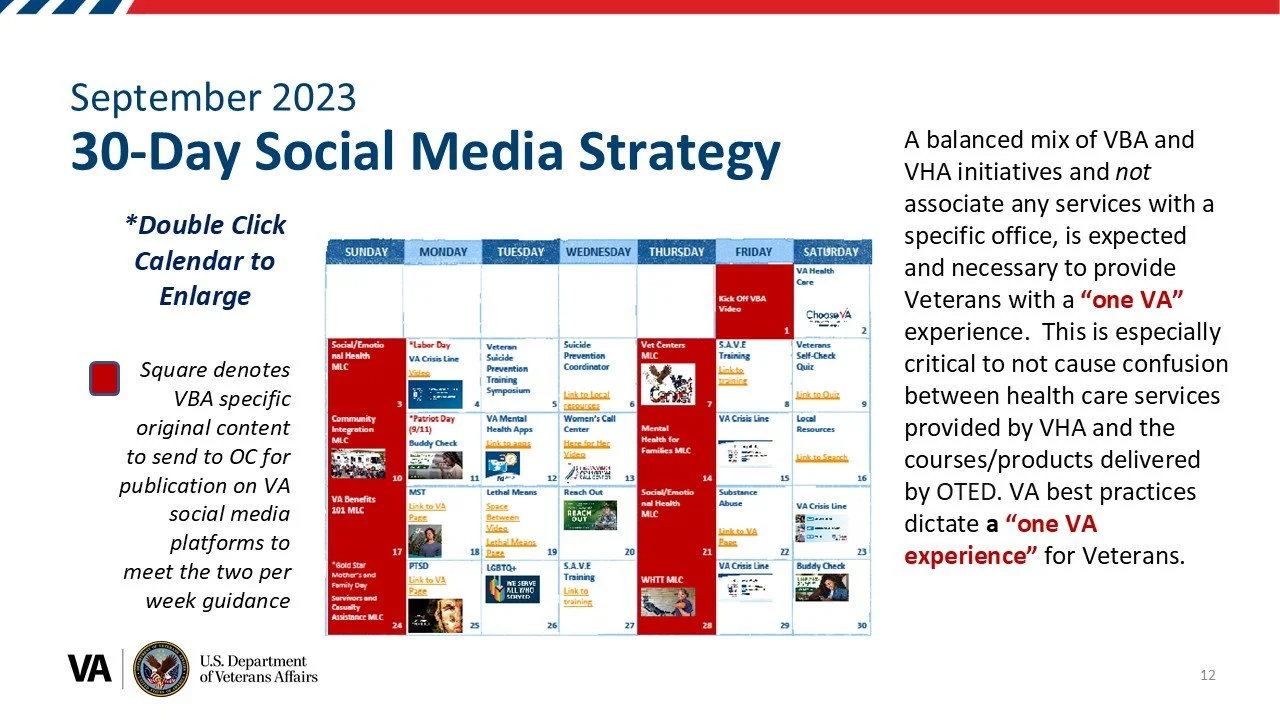 I developed the strategic communications plan* and executive briefing for VAās Suicide Prevention Month campaign to help Veterans better understand and access lifesaving mental health resources. The campaign aligned with the VAās national strategy and emphasized a āOne VAā experience to avoid confusion and ensure consistency across platforms. I created messaging, outreach strategies, and social media content that encouraged Veteransāespecially those not currently in the VA systemāto trust VA for their mental health care. The communications highlighted that VA is valuable, desirable, and convenientāand that help is always available.
